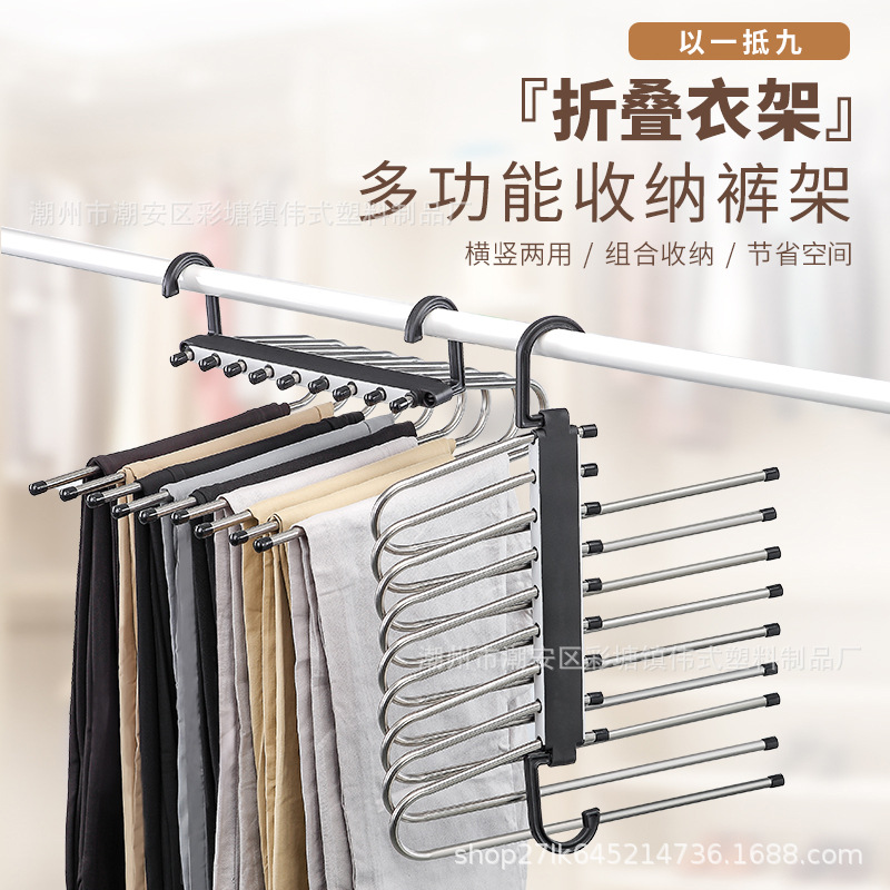 不锈钢魔术裤架多功能防滑防倾斜柜内多层无痕裤挂架收纳外贸批发